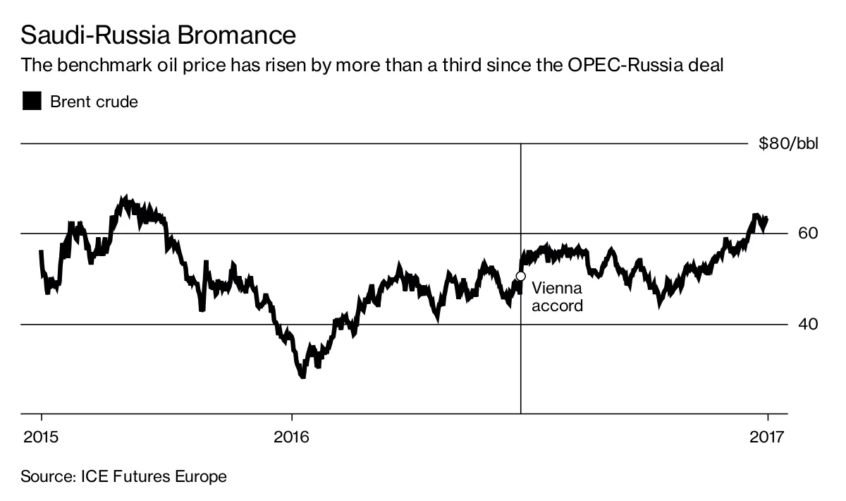“这是互利的,”乔说。“沙特需要一个大型石油生产伙伴来有效影响市场,而俄罗斯在中东更大地缘政治和经济角色的潜力使得遵守减产成为莫斯科的一个便捷选择。”