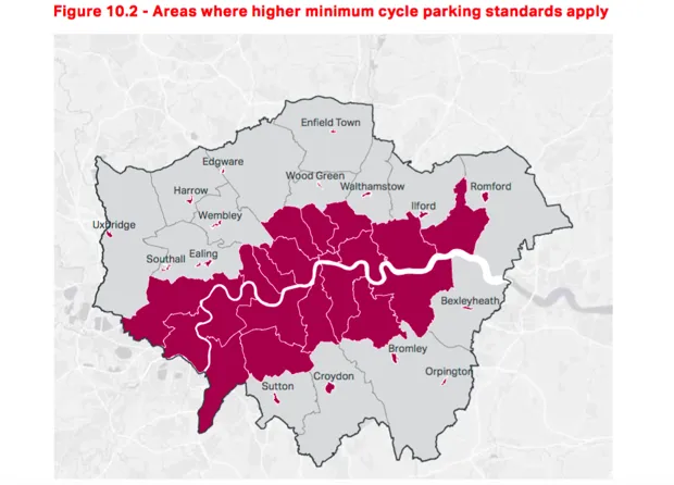 唯一将获得新停车位的道路使用者是骑自行车的人:该计划要求企业提高最低自行车停车位的要求,并在泰晤士河大部分河岸周围设立一个新区域,新的建筑将需要更高的最低要求。