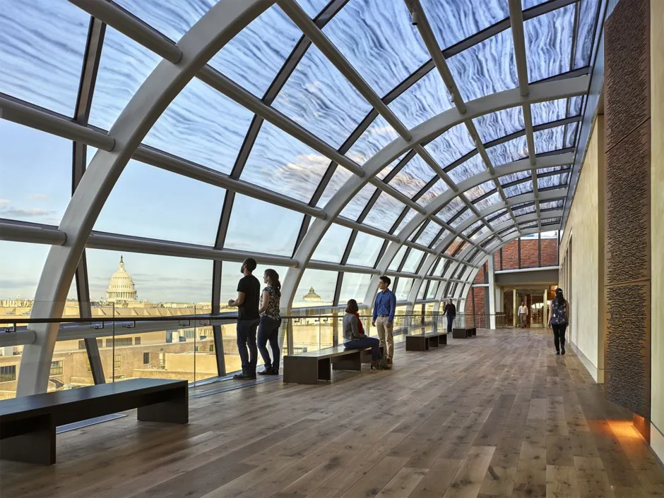 如果圣经博物馆显得杂乱无章,那绝不是杰伊·史密斯集团(Smithgroup JJR)这座非凡博物馆建筑的首席建筑师和工程师的错。博物馆位于一座建于1922年的前冷藏仓库内,最近曾作为设计展厅使用。项目的首席设计师大卫·格林鲍姆(David Greenbaum)将博物馆形容为“重写本”,这个术语指的是手稿表面下文本秘密的证据。在这种情况下,隐藏的历史就是建筑的工业根源,这些根源仍然透过这个地方的现代氛围显现出来。