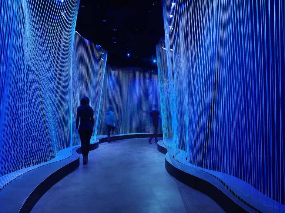 圣经博物馆的核心是一种世俗信念,即充满古老文献的沉闷博物馆令人昏昏欲睡。这种信念在出埃及记的展览中表现得尤为明显。似乎其中一个富有氛围的场景是模仿德雷克的“Hotline Bling”视频。(该视频本身借鉴了 詹姆斯·特瑞尔的沉浸式艺术环境中的色彩变化主题。)这个展厅应该传达一些关于上帝与亚伯拉罕的契约的信息:即它是酷的,而不是无聊的。