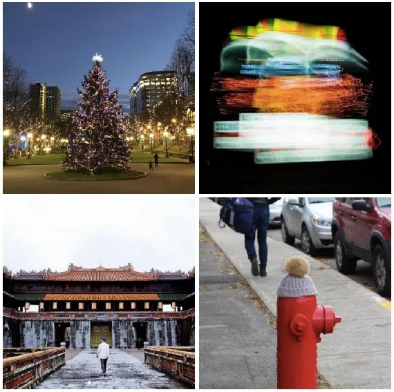 @shaunemackinlay 捕捉到了新斯科舍省哈利法克斯的常青节日气息; @mallory_wanders 拍摄了彭萨科拉的霓虹灯标志的长曝光; @kelvintagnipez 在越南顺化骑自行车时拍摄了建筑; @lekurosawa 拍摄了一只带有季节特色的消防栓。