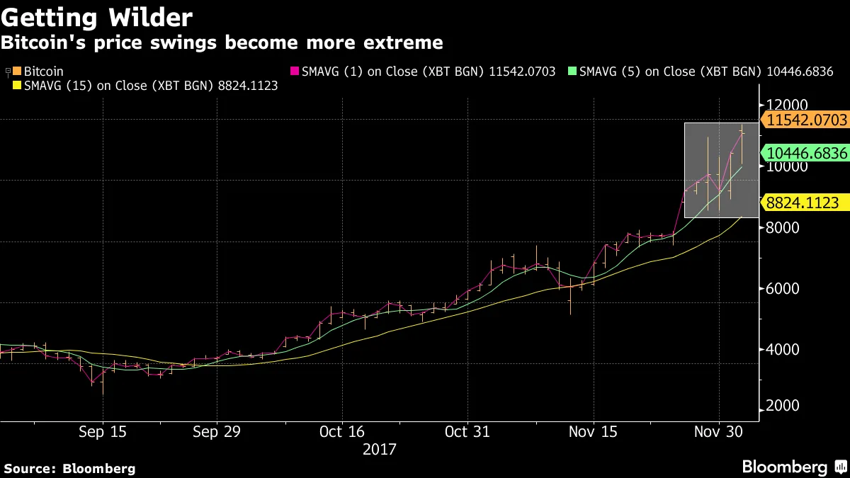 比特币的清算即将来临或许比特币能够迅速从剧烈的抛售中反弹并避免长期下滑的最大原因是没有有效的方式来对抗这种加密货币。考虑到在11月29日的90分钟内,比特币从高点$11,434暴跌至低点$9,009,符合传统的熊市定义,跌幅超过20%后又反弹至周一交易超过$11,800。现在,怀疑论者可能有一个真正的方式来对比特币进行长期押注,即CME集团、Cboe全球市场和纳斯达克计划推出比特币期货合约。彭博新闻的Rob Urban报道,主要保持观望的对冲基金正在等待芝加哥商品交易所的期货市场开放,以寻找对抗这种加密货币的新机会,来自超过七位交易资产的人的消息。一些人认为比特币市场是“有史以来最大的做空机会之一”,投资于加密货币的Flight VC合伙人Lou Kerner告诉彭博新闻。“你有很多狂热者,还有很多人,包括我,认为这是人类历史上最伟大的事情。你有很多人认为这是一个泡沫和庞氏骗局。结果是,他们两者都不可能是对的。”Cboe周一表示将于12月10日开始交易比特币期货,而CME的合约定于12月18日首发。纳斯达克计划在2018年提供期货,消息人士透露。