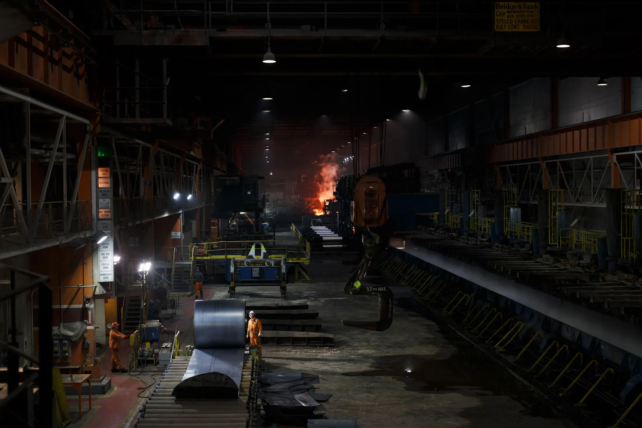 在加热到 2300 华氏度后,钢板被轧制成薄条并卷成卷。摄影师:Cole Burston/Bloomberg凯斯滕鲍姆在大湖区的重大赌注的起源可以追溯到一场关于40美分的不愉快争执。