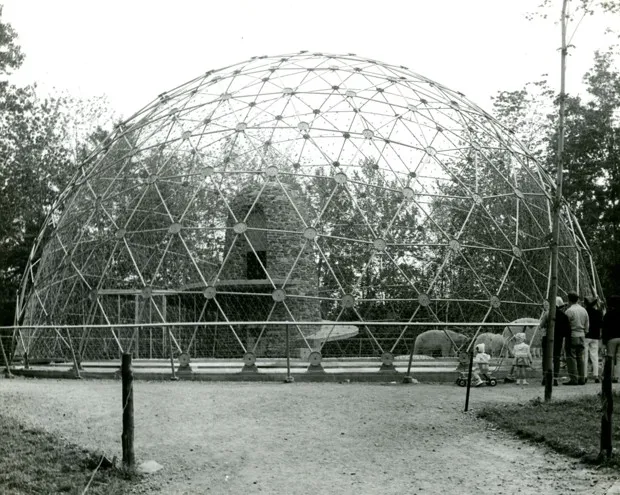 格兰比动物园的北极熊围栏 保罗·O·特雷帕尼耶和维克多·普鲁斯卡尔加里大学,加拿大建筑档案馆林赛于1984年去世,享年60岁。富勒在一年之前去世,享年87岁。几何穹顶在1970年代与DIY反文化相关联,但由于在建造、防水和分隔方面的挑战,始终未能证明适合广泛的住宅使用。加拿大又迎来了两个几何穹顶的标志性建筑——虽然不及富勒和佐藤的规模——分别位于多伦多(埃伯哈德·齐德勒的“电影球”,1971年)和温哥华(布鲁诺·弗雷斯基的“博览中心”,1986年)。