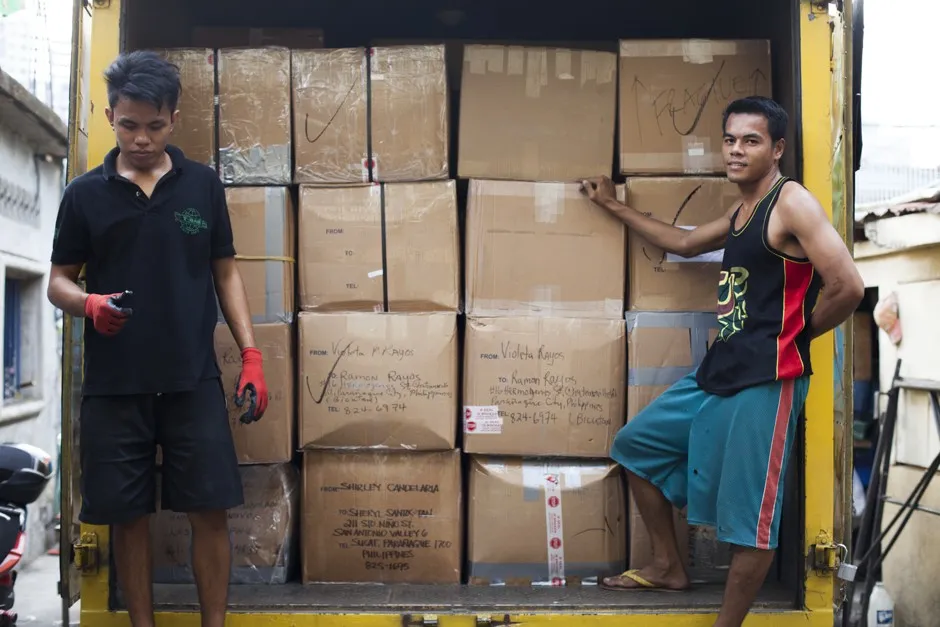 如果你幸运的话,你的箱子是最后一个装入集装箱的包裹,然后被封闭并送走。否则,箱子必须等待集装箱被填满。然而,雇佣 balikbayan 服务的家庭更看重体积和价值,而非及时性,因此箱子大多装满了情感上非紧急的物品。