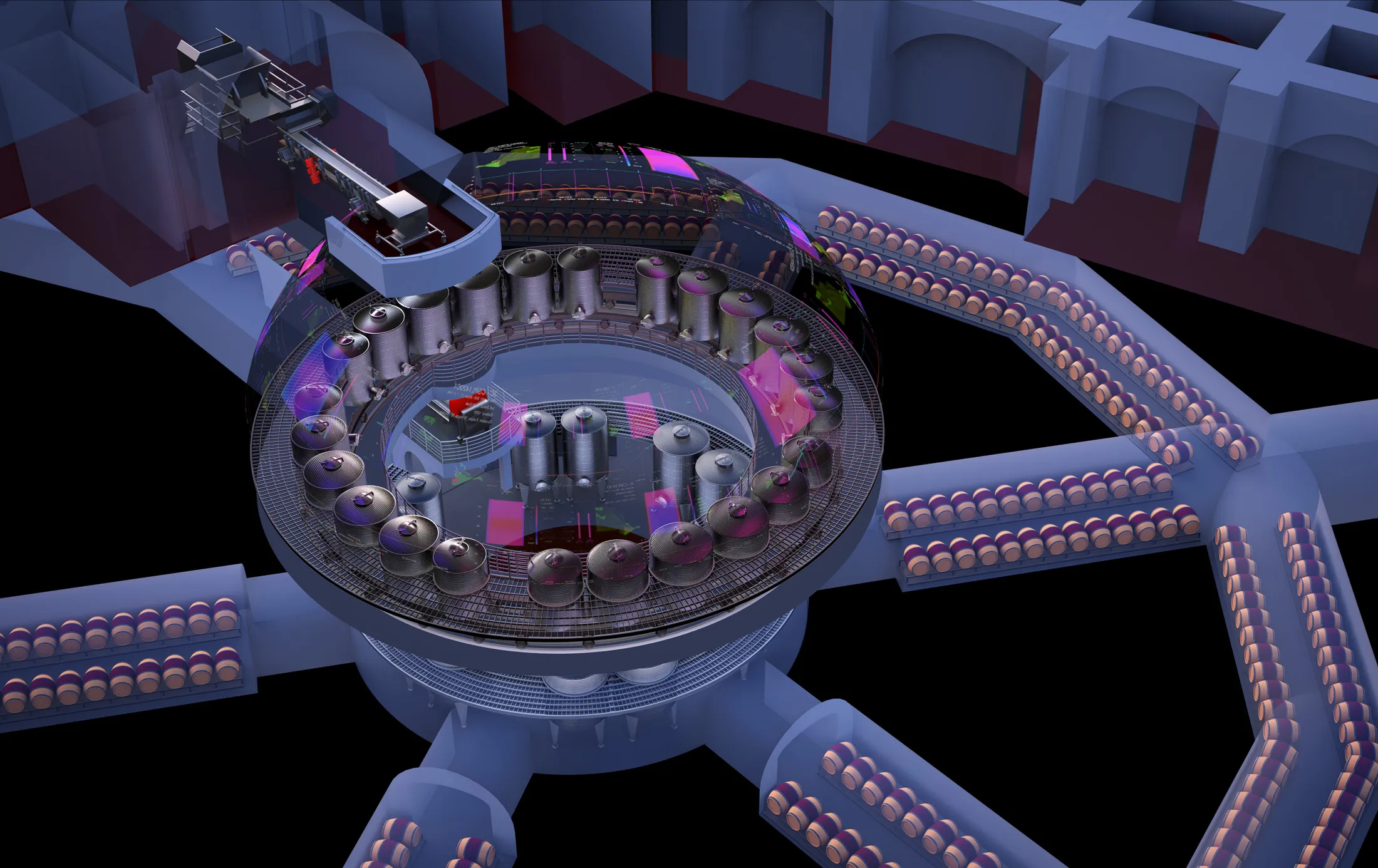 Palmaz酒庄的酿酒过程发生在一个工程设计的迷宫中,隧道和圆顶雕刻在纳帕的乔治山脚下的岩石中。来源:Palmaz酒庄Felix是发酵智能逻辑控制系统(Filcs)的昵称,这是Palmaz工程师开发的软件,用于分析并最终帮助微观管理酒庄的36个酿酒罐。利用石油行业开发的技术,Felix每秒从罐中的温度和密度传感器收集10次数据,并使用经过广泛测试的算法调整设置以维持平衡。这个基于网络的系统自2014年以来一直在线,其亚马逊托管的数据库每天增长数千兆字节,但它始终是一个备份,一个好奇心。首席酿酒师一直在场,因此它从未独立运行。