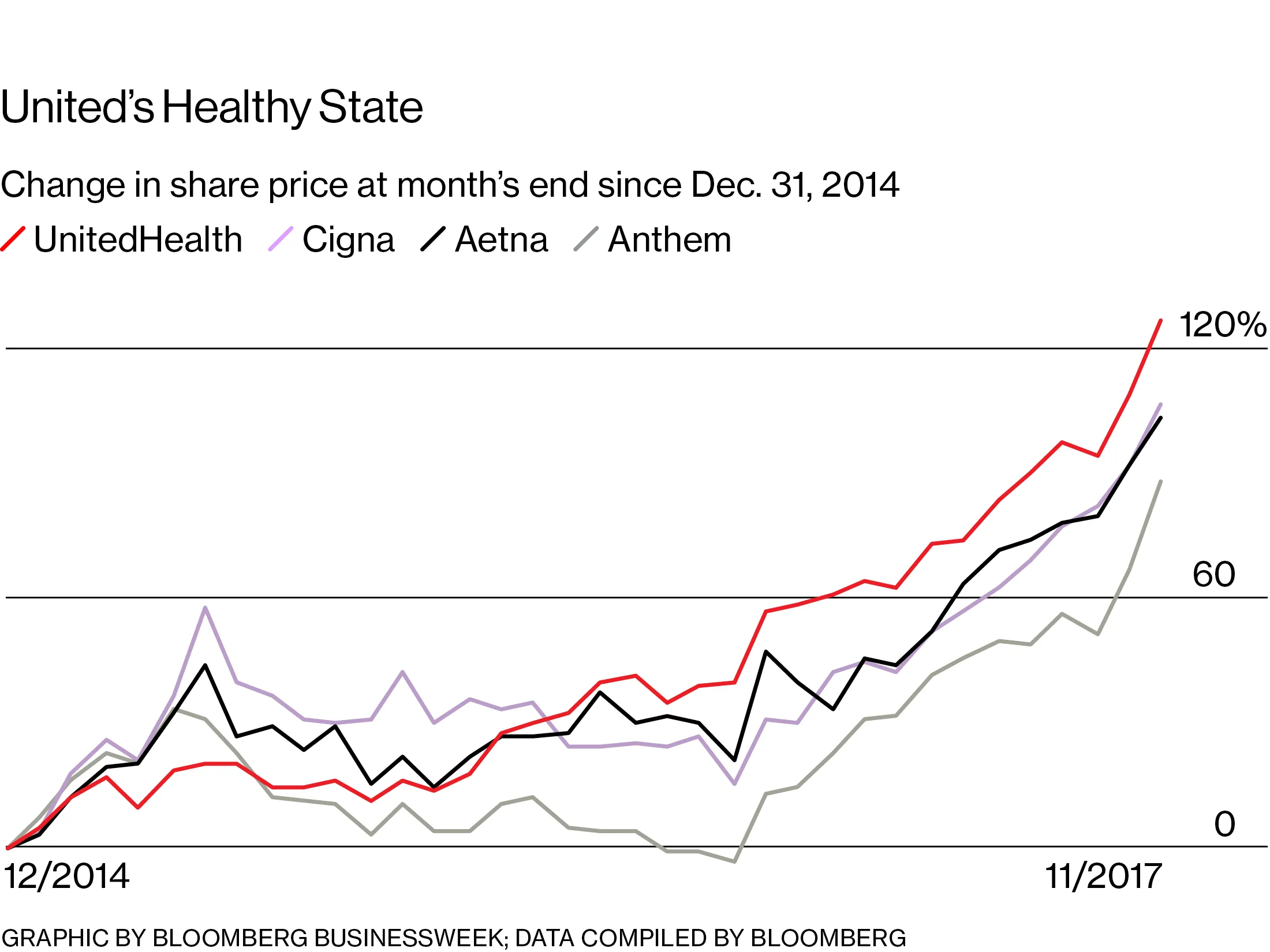 在达维塔交易之前,约有30,000名医生与OptumCare相关联。他们为联合健康的会员以及竞争对手健康保险公司的客户提供服务。该公司不拥有药店,但其药房福利管理者为6500万人提供服务——而CVS的PBM则有9000万会员。近年来,联合健康的利润和股票表现超过了许多其他大型健康公司的表现。