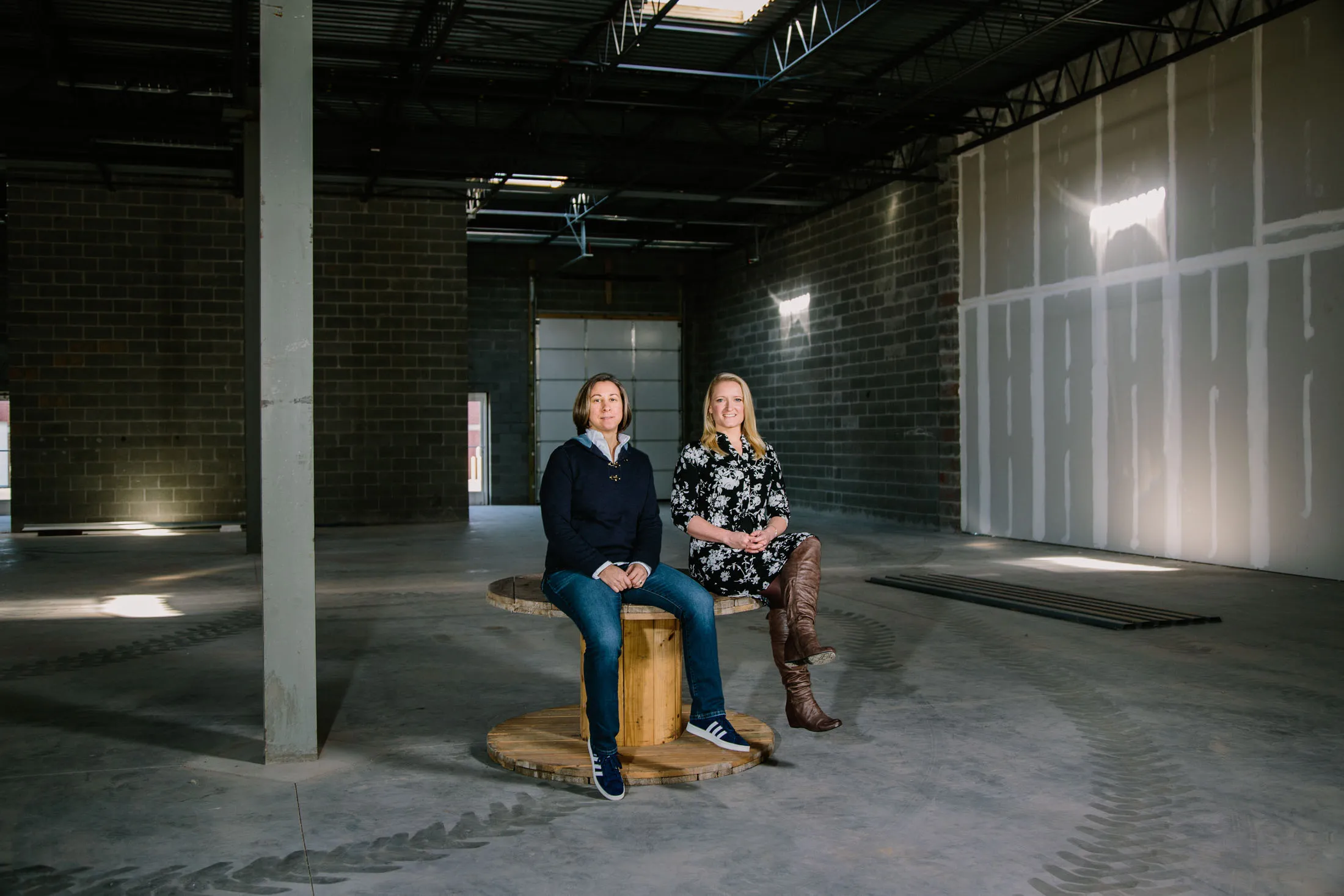 左起,Tracy Pafel 和 Jennie Herb 在马里兰州 Owings Mills 的未完成办公室空间,时间是2017年11月27日。