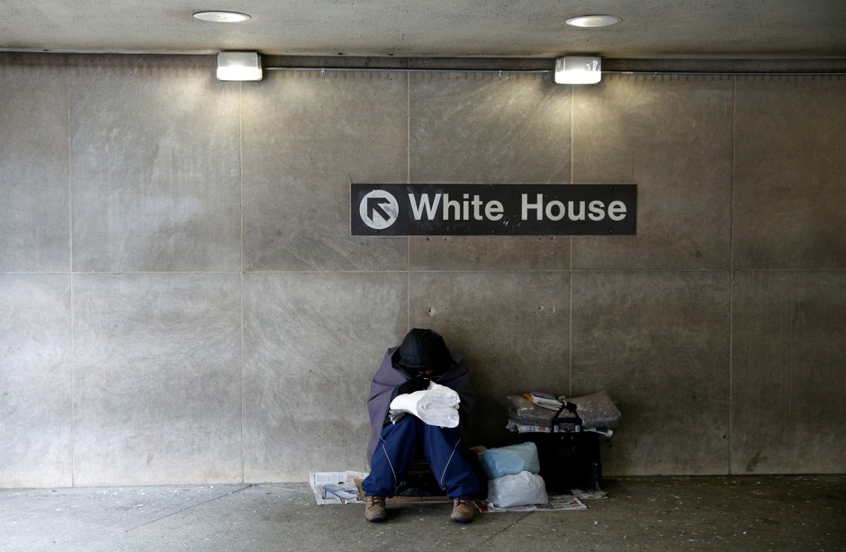 一名无家可归者试图在华盛顿特区白宫附近的地铁站保持温暖。凯文·拉马奎/路透社在2017年1月的一个晚上,美国有553,742人无家可归。这是七年来首次增长。在过去一年中,全国无家可归人口增加了1%。自2016年1月以来,增加了3,814名无家可归者。