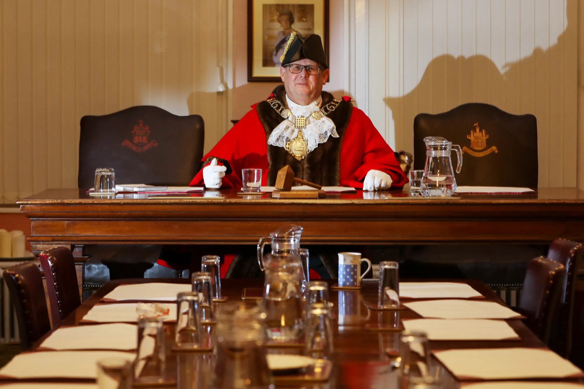 市长丹尼斯·克劳福德穿着他的法袍合影。摄影师:卢克·麦格雷戈/彭博社市长丹尼斯·克劳福德表示,在过去15年中,多达8000名东欧人迁入塞斯福德,使该镇人口增加到大约27000人,改变了日常生活的结构,他是英国独立党的成员,领导了该镇的脱欧投票。
