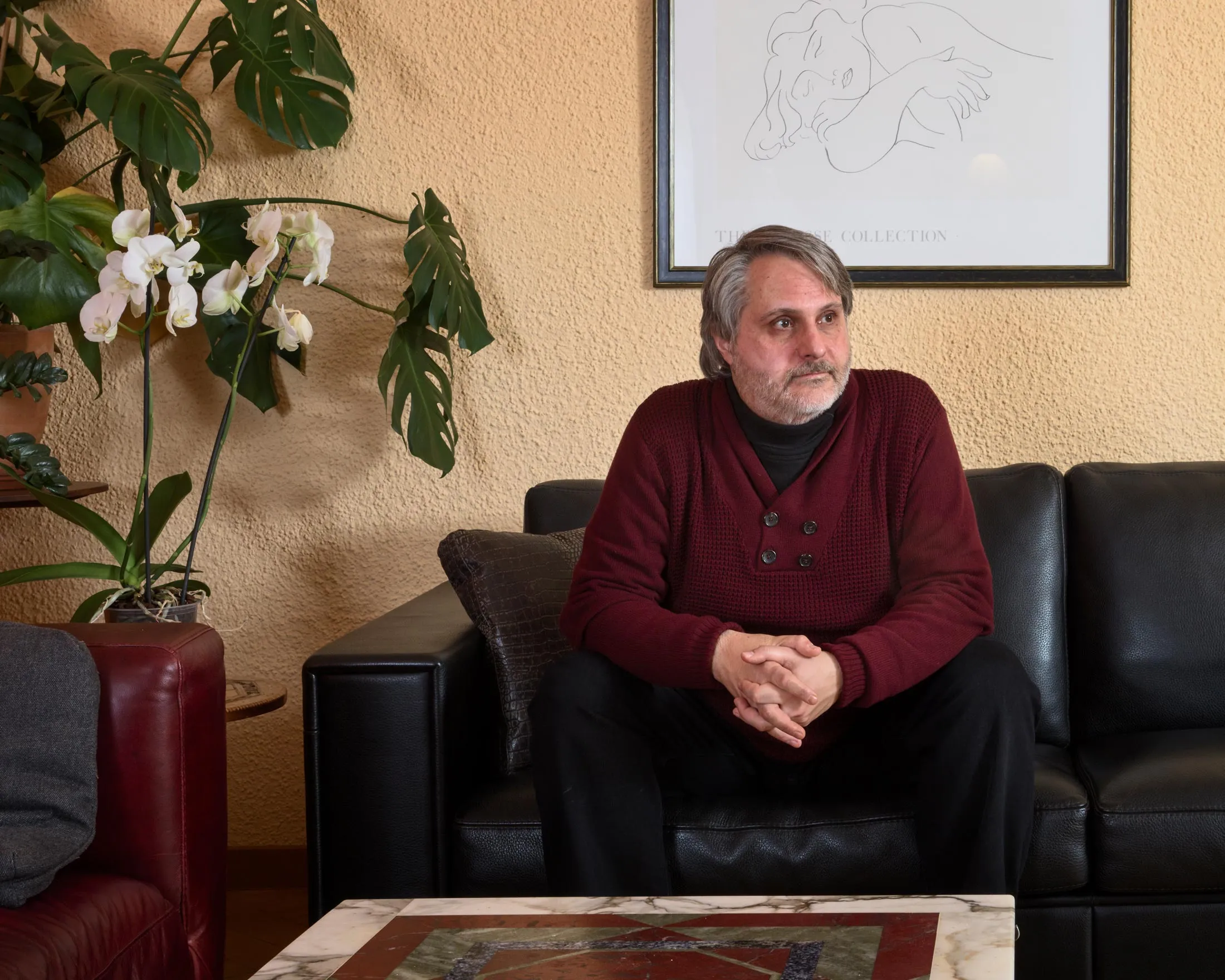 Andrea Galli 在苏黎世的家中。摄影师:Ferit Kuyas 为《彭博商业周刊》拍摄在苏黎世一条住宅街上的简约家中,Galli 和他的妻子经营着一家专业的调查机构。Galli 是瑞士意大利人,留着肩长的灰发,蓄着胡须,戴着无框眼镜,曾接受科学训练,获得粒子物理学博士学位,并在慕尼黑的马克斯·普朗克研究所工作过。如今,他将这些分析技能应用于追踪通过离岸金融系统流动的资金。