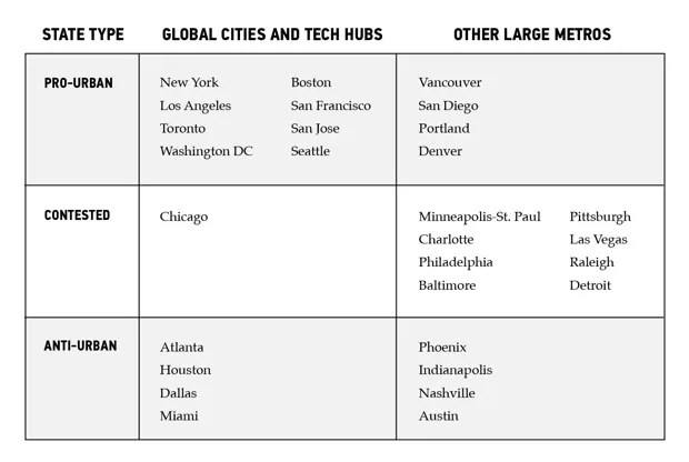 亲城市州的城市和大都市在这种利益对齐中受益匪浅。尽管面临住房可负担性和不平等的问题,加利福尼亚的大城市和大都市,特别是湾区,仍然是世界上最具创新性的城市之一。多伦多增强了其吸引顶尖人才和科技公司的能力,正如人行道实验室最近决定在该市落户所证明的那样。