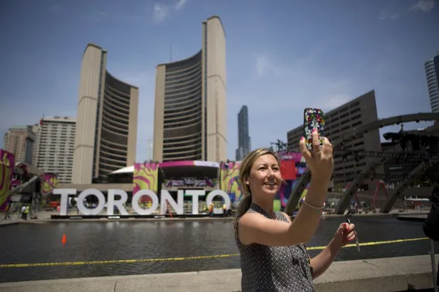丽贝卡·布莱克威尔/AP多伦多的标志产生了超过1.2亿次社交媒体印象——这是衡量城市品牌力量的现代标准。(一位城市官员称其为“我参与过的最成功的市场媒体品牌项目。”)