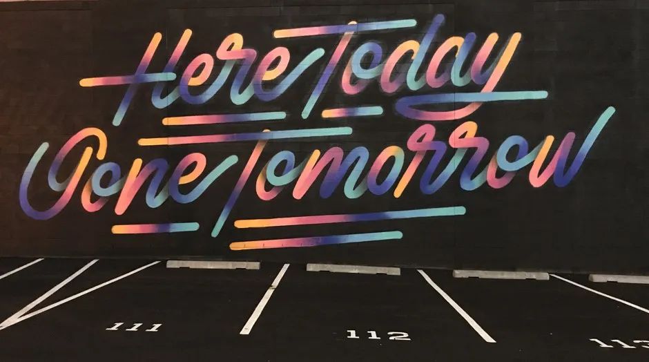 去年春天的一个晚上,我在华盛顿特区东北部的一条新建豪华公寓街道上散步。在一栋建筑的侧面有一幅新的壁画,用巨大的彩虹色字体宣告:“今天在这里,明天消失。”我仍然不确定它是否自我意识到——这是华盛顿特区流离失所的零点,正对面是一家正在关闭以进行重建的低收入合作社。我拍了一张照片,写了一个有点讽刺的标题,并发布到Instagram上。到早上,这栋公寓楼本身给这张照片点了赞。
