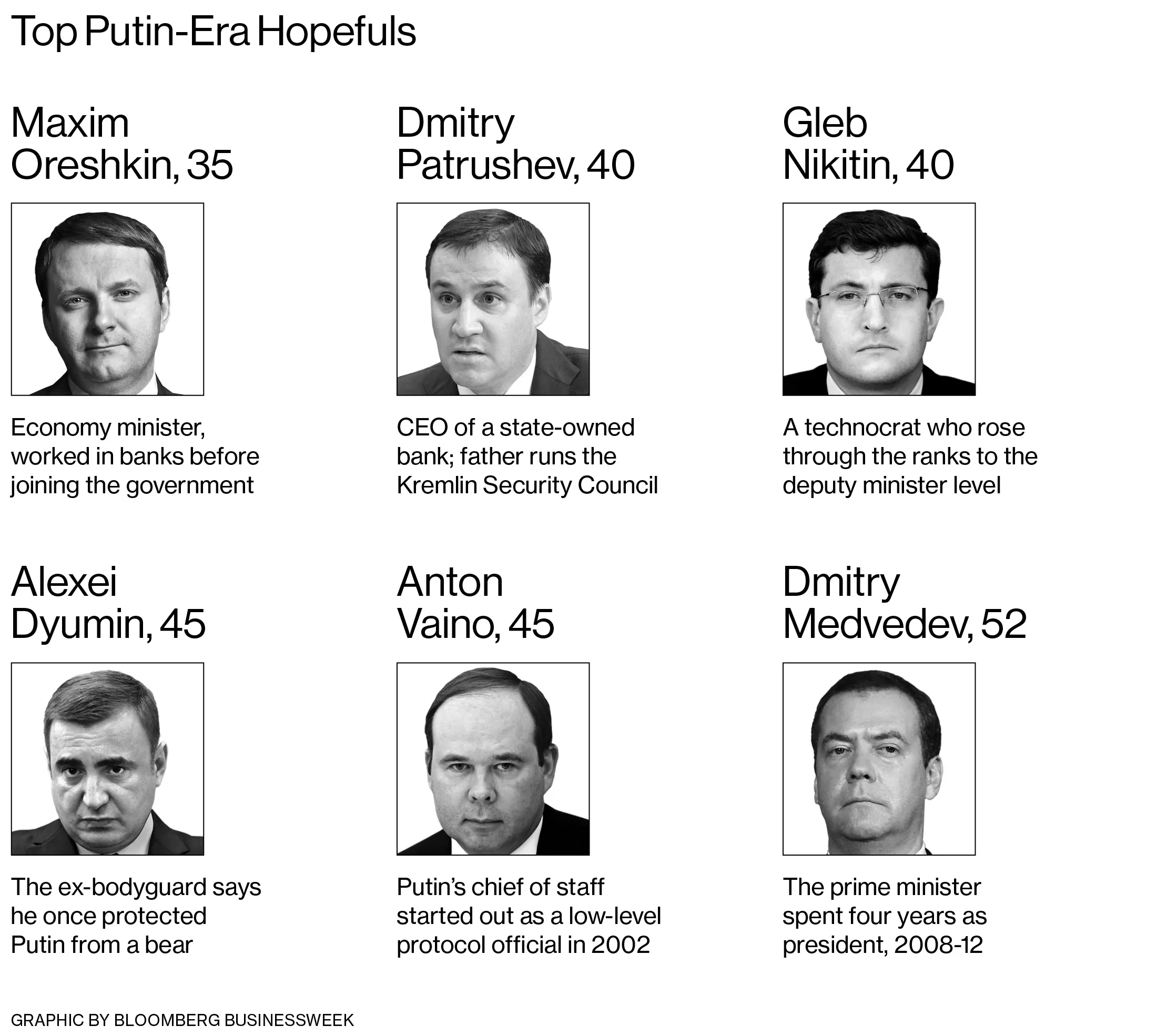 现在,普京在一个高度个性化的政府体系的顶端无可挑战地统治着。他的支持率在2014年克里米亚并入后始终保持在 80%以上,尽管公众对 疲弱的经济增长的不满在本世纪最长的衰退之后有所增加。在各派系争夺继任优势的同时,他希望建立一批忠诚的干部,以便在他离任后能够管理俄罗斯并保障他的安全。“普京试图从一个非常个人化的统治体系转向一个更集体的体系,”莫斯科政治信息中心负责人阿列克谢·穆欣说。