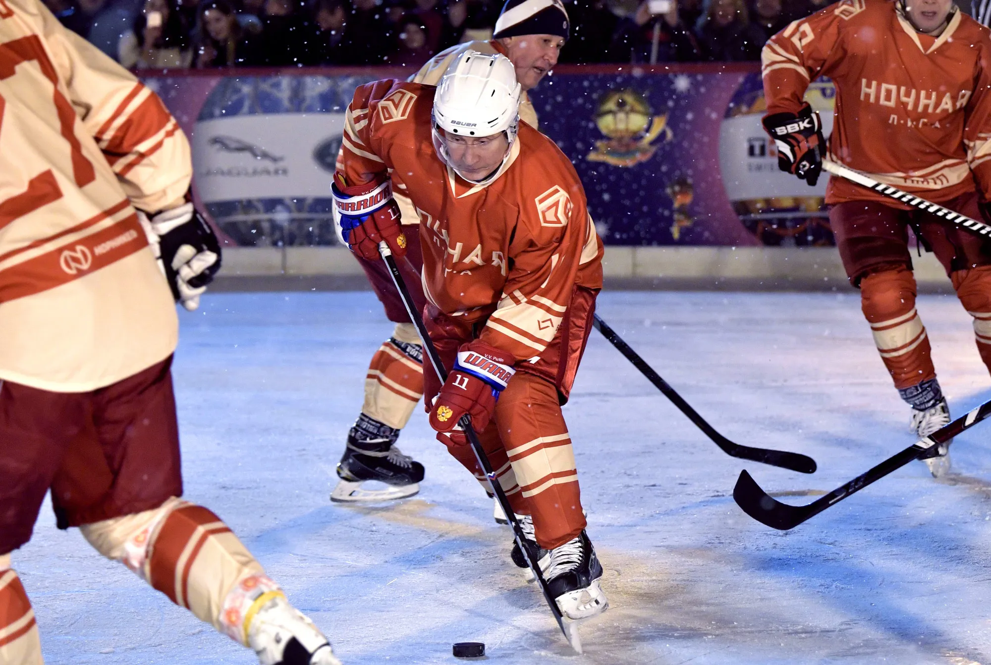 俄罗斯总统弗拉基米尔·普京在莫斯科的一场夜间冰球比赛中。