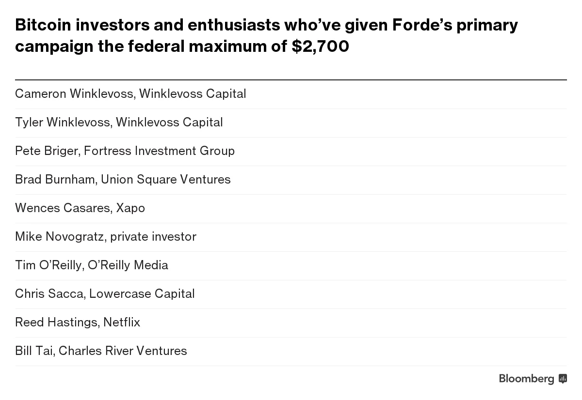 福德的比特币资质如此强大,以至于许多捐赠者选择直接向他的竞选活动捐赠实际的比特币,而不是以传统方式写支票。联邦选举委员会 记录显示,尽管他的竞选活动刚刚六个月,但福德已经积累的比特币捐款超过了所有之前国会候选人的总和。