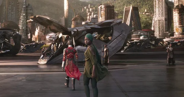 瓦坎达不仅仅是一个技术官僚国家,也不是一个被美化的混凝土丛林。它的领导层既受民主原则的影响,也受技能和力量的影响。在电影对这片土地的飞越中,瓦坎达被设计成一个硅和金属与树木和山脉的自然景观交织在一起的地方,用于建造其建筑。行人涌入瓦坎达的城市走廊。穿梭在大都市中的穿梭车在先进的磁悬浮轨道上蜿蜒而行,而像蜻蜓一样雕刻和有翅膀的宇宙飞船在天际线上翩翩起舞。