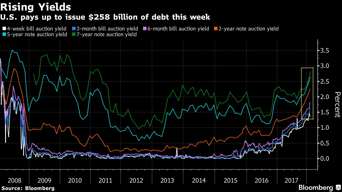 好消息是,美国财政部本周能够向交易员抛售2580亿美元的债务,而没有导致债券市场崩溃。不过,坏消息是,目前没有证据表明,自2011年以来的一些最高收益率还足够高,能够真正吸引那种可以防止借贷成本继续上升的需求。本周的拍卖活动以周四出售290亿美元的七年期国债为高潮。投资者的投标金额是所提供金额的2.49倍,低于上个月该到期债券的所谓投标覆盖率2.73倍,尽管收益率为2.84%,是自2011年以来的最高水平。本周的供应过剩是未来的前奏,因为政府寻求筹集资金以弥补减税和更大预算赤字带来的收入损失。总体而言,美国预计今年的债务销售至少将翻倍,超过1万亿美元,为2010年以来的最高水平。对交易员来说,这个数字更令人担忧的是,美联储同时正在从该市场撤回,减少对到期收益的再投资。