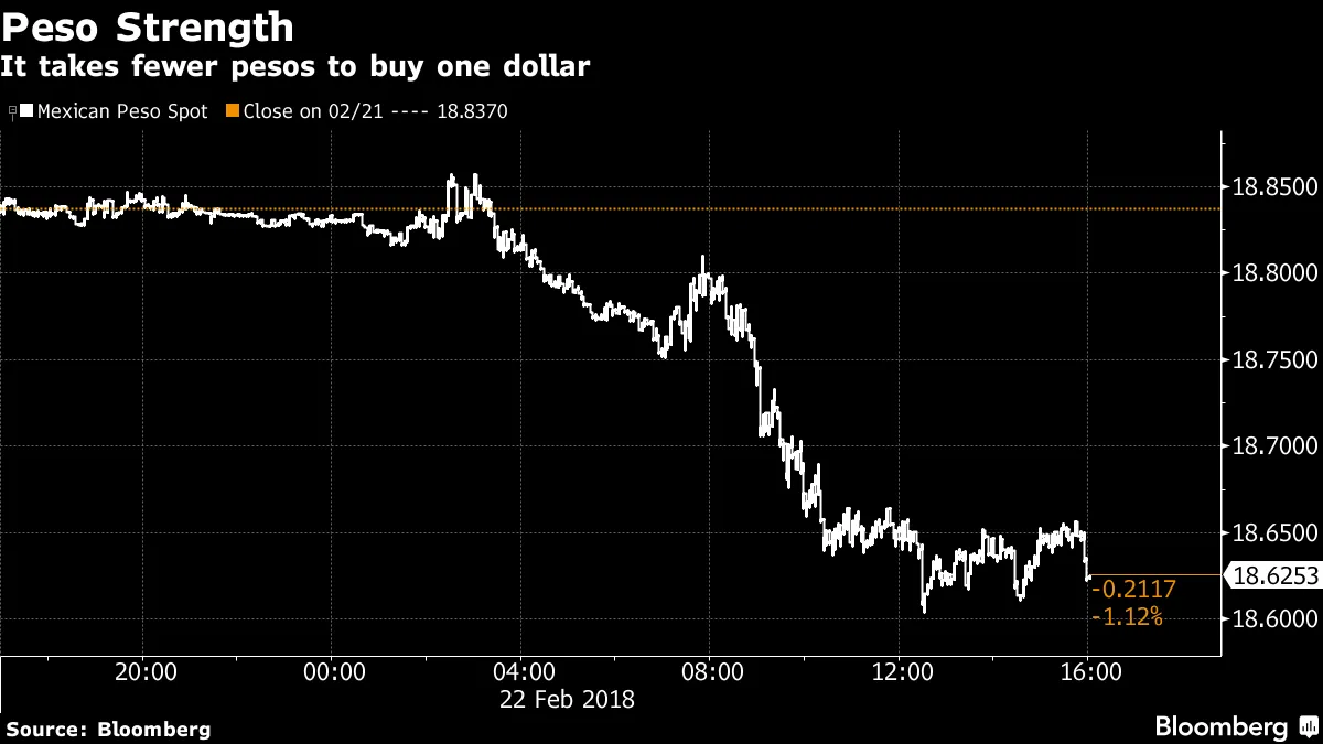 政治仍然重要通常,显示通胀放缓的报告对货币是有利的,因为这可能表明利率可能会下降——或者至少不会在短期内上升。但对于墨西哥比索来说情况并非如此,尽管该国国家统计局表示年通胀在2月初从1月底的5.58%放缓至5.45%,但比索仍是本月以来上涨幅度最大的货币。那么,怎么回事呢?彭博新闻的塞巴斯蒂安·博伊德报道,最近的政治新闻可能正在推动对比索的需求。一系列左翼民粹主义总统候选人安德烈斯·曼努埃尔·洛佩斯·奥夫拉多尔的代理人正在逐步消除对石油行业开放的反对。同时,商业友好的候选人里卡多·阿纳亚在民调中位居洛佩斯·奥夫拉多尔之后,承诺将最低工资翻倍。博伊德报道,这两个发展可能对比索是积极的。任何在洛佩斯·奥夫拉多尔的代价下提升阿纳亚的因素都会让交易员感到安心,而市场最初对左翼候选人持谨慎态度的主要原因之一就是他对石油行业的立场。