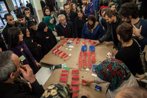 合作社成员进行参与式设计练习杜兹杰希望工作室参与式设计过程在土耳其很少被应用,这给专业人士带来了对自己工作的新的见解。“我们是[大城市]的人;我们没有考虑到居民提出的事情,比如为食品准备提供阳台空间或存放腌菜的储藏室,”阿达纳利说。