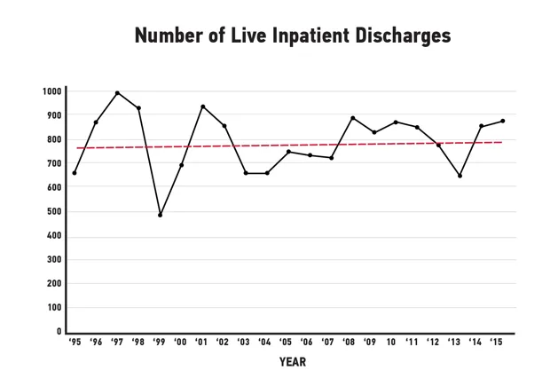 但是,在这段时间内,枪支造成的凶杀案虽然总体下降了30%,但枪击事件似乎并没有遵循相同的模式。根据医院住院出院记录,1995年芝加哥地区枪击受害者的年生还人数为677,2015年则为870,期间数字起伏不定。