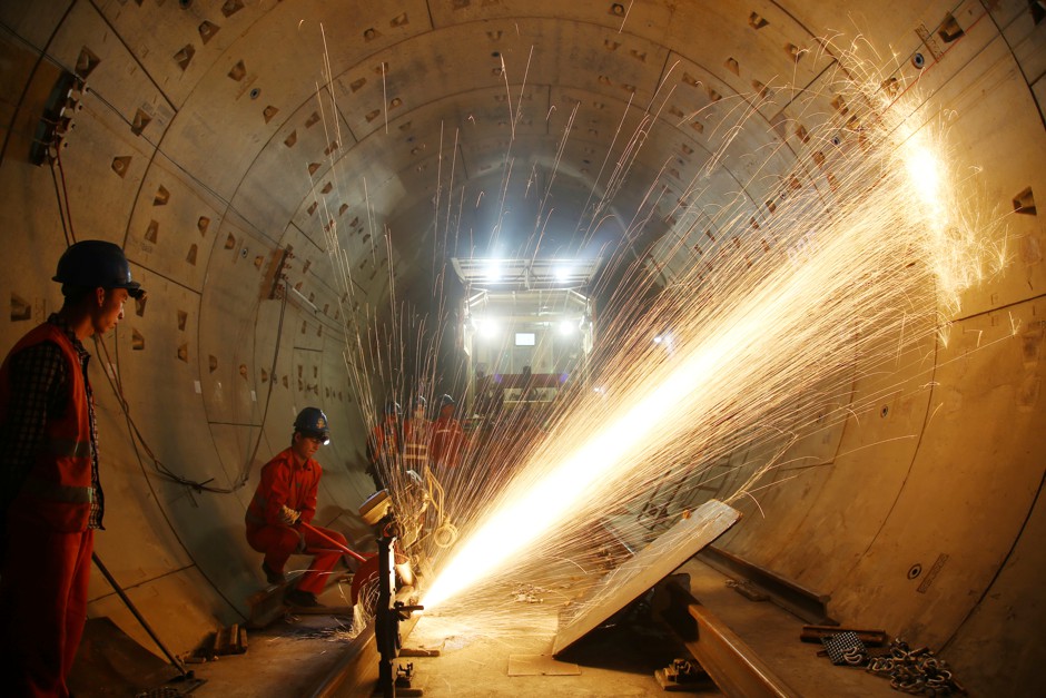 工人在常州第一条地铁线的施工现场切割轨道,预计于2019年开通。路透社中国第一条地铁穿过北京的心脏。1953年提出,作为将士兵从郊区的兵营运送到市中心的一种方式,13英里,16站的地铁线路在经过多年的辩论后于1969年开通,其中包括关于最终拆除曾保护元朝皇帝的700年历史的大都城墙的决定。