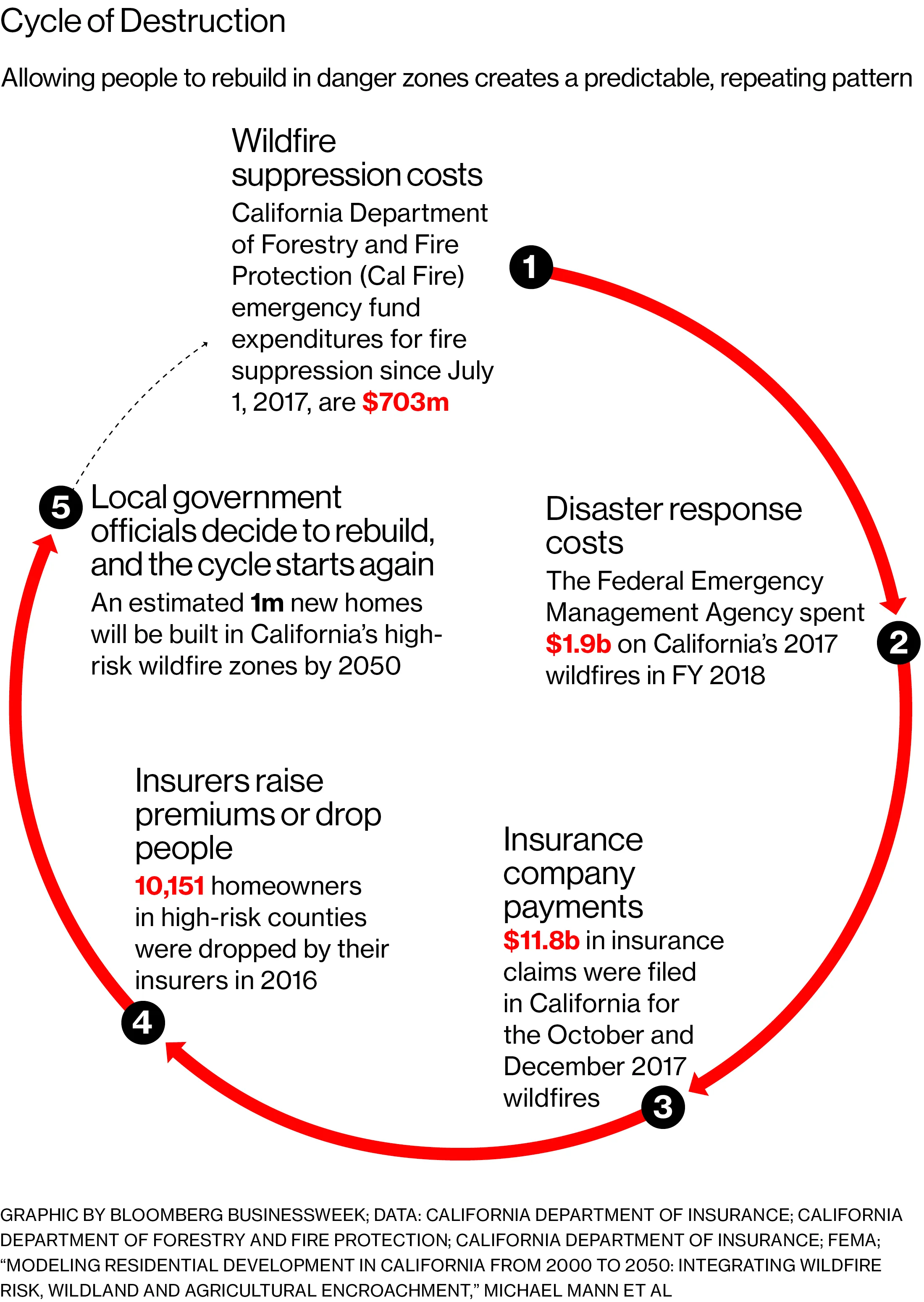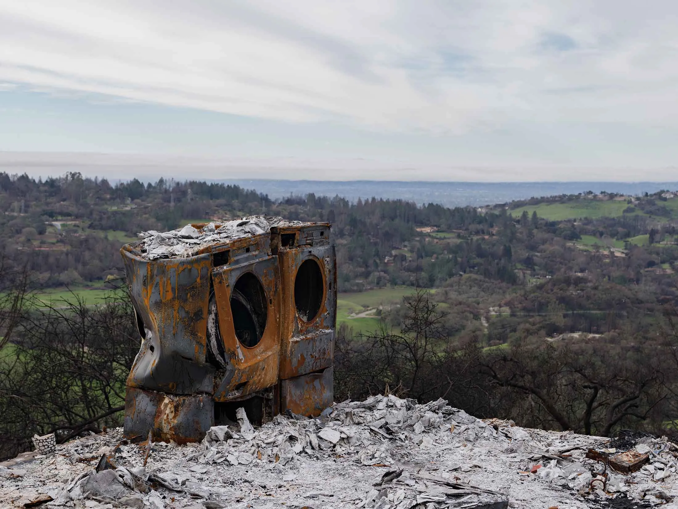 加利福尼亚州圣罗莎的Foothill Ranch Road上的洗衣机和烘干机。摄影师:卢卡斯·福格利亚为《彭博商业周刊》拍摄尽管房屋再次被烧毁的风险,地方官员几乎总是决定重建是合理的。威斯康星大学麦迪逊分校的研究员阿努·克雷默研究了1970年至1999年间加利福尼亚州被野火摧毁的3,000栋建筑的情况。她发现94%的建筑被重建。结果是,火灾持续而可预测地在同一地点摧毁房屋。