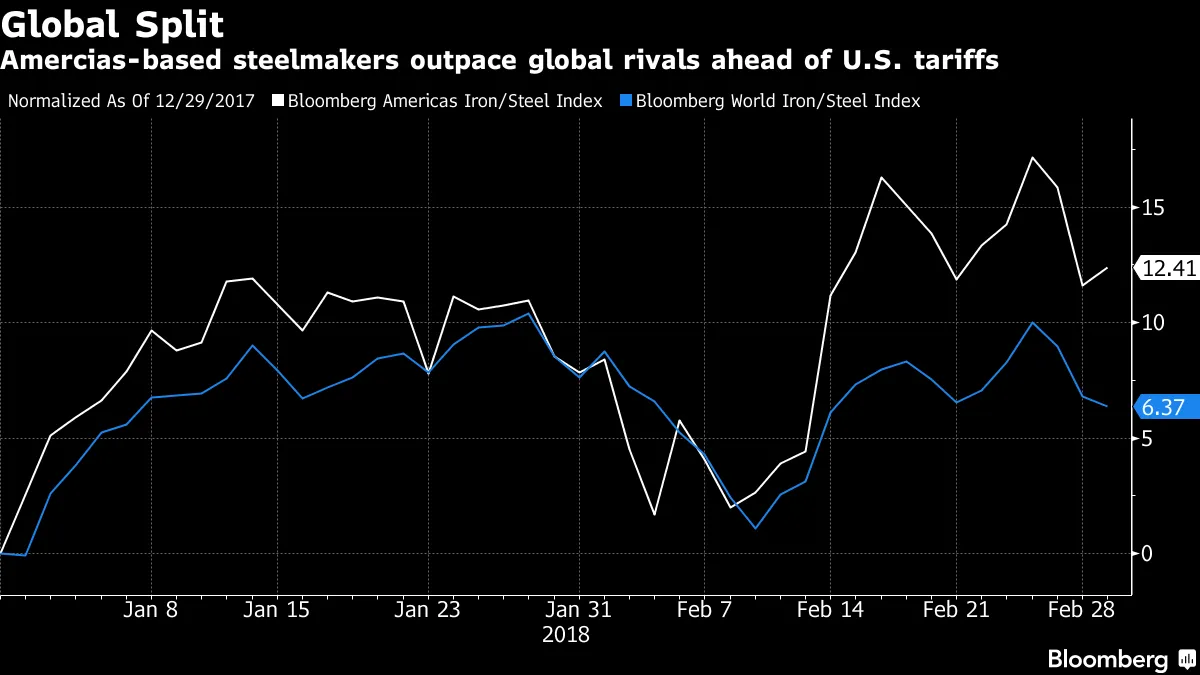 赢家与输家钢铁和铝市场如预期般反应,这意味着它们在即将到来的高额关税消息中上涨。美国钢铁、AK钢铁控股和世纪铝业上涨了多达14.7%。铝价在伦敦上涨,向美国中西部交付金属的溢价 自2013年以来上涨幅度最大,根据彭博新闻的乔·里希特和卢齐·安·哈维尔的报道。特朗普去年指示商务部确定钢铁和铝的进口是否对美国国家安全构成威胁。美国铝业和钢铁生产商在预期进口限制和全球需求改善的背景下上涨,芝加哥的世纪铝业的股票去年翻了一番多。美国汽车制造商的股票下跌,通用汽车下跌了多达4.93%,福特汽车下跌了多达3.86%。关税可能提高汽车制造成本,这对汽车行业来说是个艰难的时刻。周四,六大汽车制造商中的五家 与去年同期相比,二月份的交付量下降 。美国国际汽车经销商协会主席科迪·拉斯克表示:“汽车销售在最近几个月趋于平稳,制造商无法承受在美国制造汽车和卡车的成本急剧上升。”