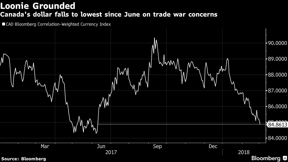 加拿大的加元受挫周四,货币市场上最大的输家之一是加拿大元。人们一直认为,如果特朗普继续他的保护主义言论,加拿大将会遭受损失 -- 与墨西哥一起 -- 。现在这一切正在发生,所谓的加元正在下跌,跌至自六月以来对九个发达市场同行的最低水平。这一下跌使得加拿大元在彭博相关加权指数中的损失自今年1月8日的高点以来接近5%。而且这还不是全部:加拿大统计局周四表示,外国直接投资去年骤降至2010年以来的最低水平,受到资本从该国油田外流和对北美自由贸易协定命运的担忧的影响。2017年,直接投资下降了26%,降至338亿加元(263亿美元)。资本流动连续第二年下降,自2015年以来下降了超过一半。根据国际收支数据,加拿大经济自全球经济衰退以来严重依赖外国资金 -- 自2008年以来总计超过5000亿加元,仅在过去两年就约1300亿加元。