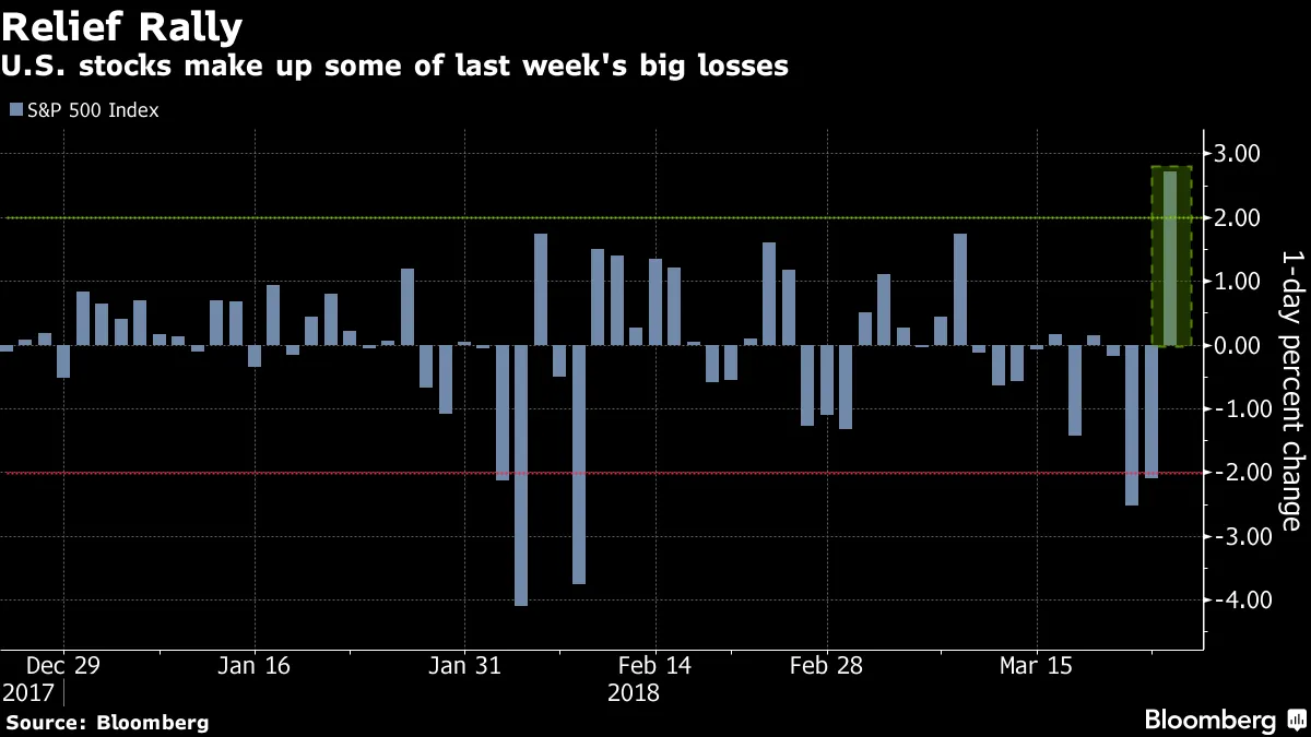 当市场在周五收盘,结束了数年来最糟糕的一周时,气氛无法更糟。美国正在讨论对中国商品征收高额关税,而中国则在回应中谈论减少对美国国债的购买。正当关于另一个潜在的“黑色星期一”的讨论四起时,史蒂文·姆努钦却平息了紧张情绪。财政部长在周日表示,他对美国能够与中国达成协议感到乐观,这将避免特朗普总统对来自该国至少500亿美元商品征收关税。就这样,股市开始反弹,自2015年以来涨幅最大,标准普尔500指数飙升2.72%。反弹得益于近期抛售使股票变得便宜的感觉。标准普尔500指数以约16.6倍的预估收益结束了上周,成为两年来最便宜的水平。就在去年12月底,该指数的交易倍数高达20倍的预期收益。RBC资本市场的首席美国经济学家汤姆·波切利在周一的一份研究报告中写道,贸易言辞需要“相当大的升级”才能证明近期风险资产的回调是合理的。根据目前已知的信息,波切利估计,美国与中国之间对所有商品征收25%的“对等”关税将使美国实际GDP仅减少约半个百分点。