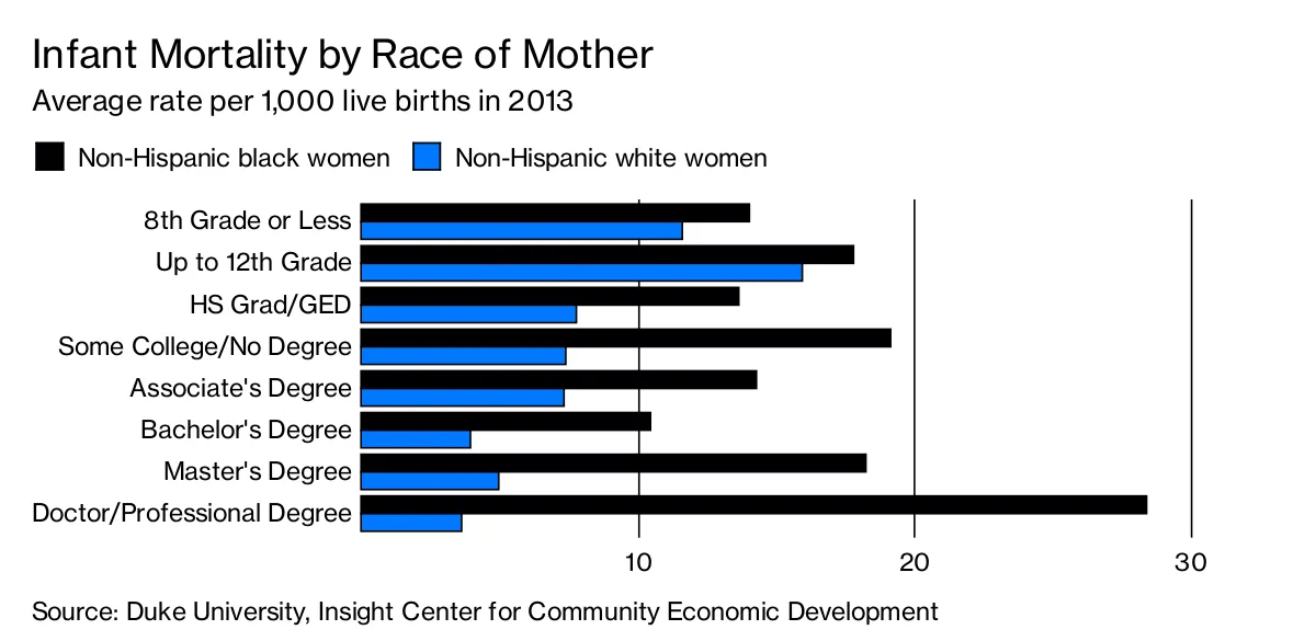 对于黑人女性来说,教育并不能保护她们免受婴儿死亡率的影响 - 彭博社