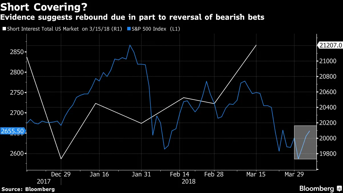 美国股市刚刚结束了自三月初以来的首次三天反弹,标准普尔500指数在此期间上涨了3.14%。显然,投资者已经不再担心美国和中国之间爆发全面贸易战的任何问题。或者,他们真的如此吗?与特朗普政府能够谈判出对双方都有利的双边协议的新信心相比,有强有力的证据表明,这次反弹与投资者被迫退出看跌押注(即所谓的“逼空”)有很大关系,因为标准普尔500指数在周一从2月8日以来的最低点开始反弹。最新数据显示,美国股票的空头兴趣在三月上半月激增,创下自2015年以来的最大增幅,达到了四个月来的最高点。当然,特朗普政府试图淡化对中国商品征收500亿美元关税的影响,称这些关税可能永远不会生效,并且不过是谈判策略,这也帮助提升了投资者的情绪。但所谓的逼空现象,发生在资产价格迅速上涨并迫使持有看跌押注的人退出交易,从而进一步推高价格,与情绪关系不大。此外,这也使得看跌者能够在更有利的水平上重新调整他们的头寸。