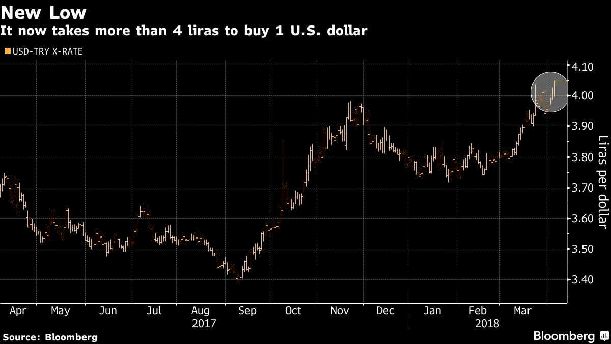 土耳其经济如果里拉的表现可以作为参考,土耳其的前景变得愈发黯淡。自九月初以来,货币贬值约16%,因为总统雷杰普·塔伊普·埃尔多安通过清除政府中的任何异议声音来巩固自己的权力。而在周四,《自由报》的一篇报道指出副总理梅赫梅特·辛杰克可能已经辞职,导致里拉暴跌超过1%,创下4.05对美元的新低。辛杰克随后在推特上表示,他将继续为国家服务“直到我们最后一口气。”这位前美林证券策略师以捍卫正统经济观点而闻名,通常被视为对抗埃尔多安降低利率驱动的平衡力量,彭博新闻的康斯坦丁·库尔库拉斯表示。当埃尔多安在2014年上台时,购买一美元只需不到2.25里拉,但由于经常账户赤字膨胀和两位数的通货膨胀,货币一直承压。埃尔多安希望在明年的选举中正式化有效的一人统治,正在让经济过热,投资者担心货币政策不够紧缩,无法稳定国家的资产。