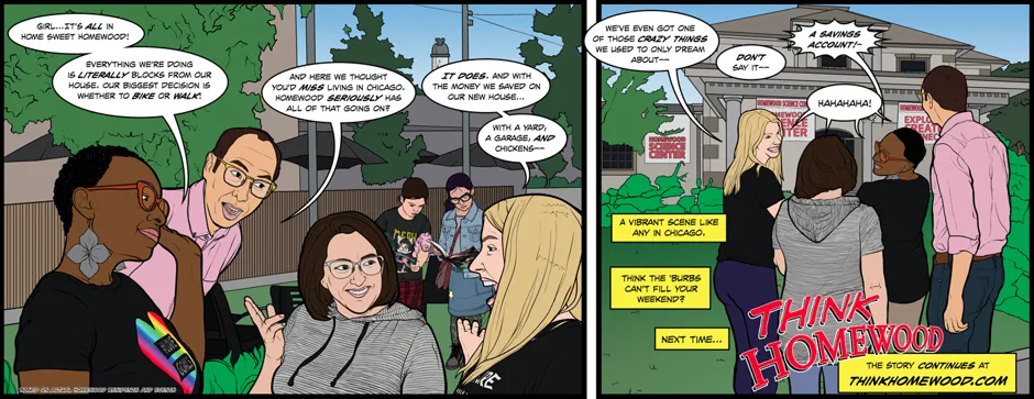 thinkhomewood.com这些广告的多种族演员并不是手法。霍姆伍德确实是 多元化的:53%是白人,37%是黑人,2%是亚裔,8%是西班牙裔。其学校以非白人为主。这些数据反映了更大的人口变化,因为有色人种正在迁出(或被迫迁出)昂贵的城市,而移民则绕过中心城市,直接前往郊区。但霍姆伍德-弗洛斯摩尔也有积极整合努力的历史: 南郊住房中心,一个地区公平住房组织,于1975年在霍姆伍德成立。