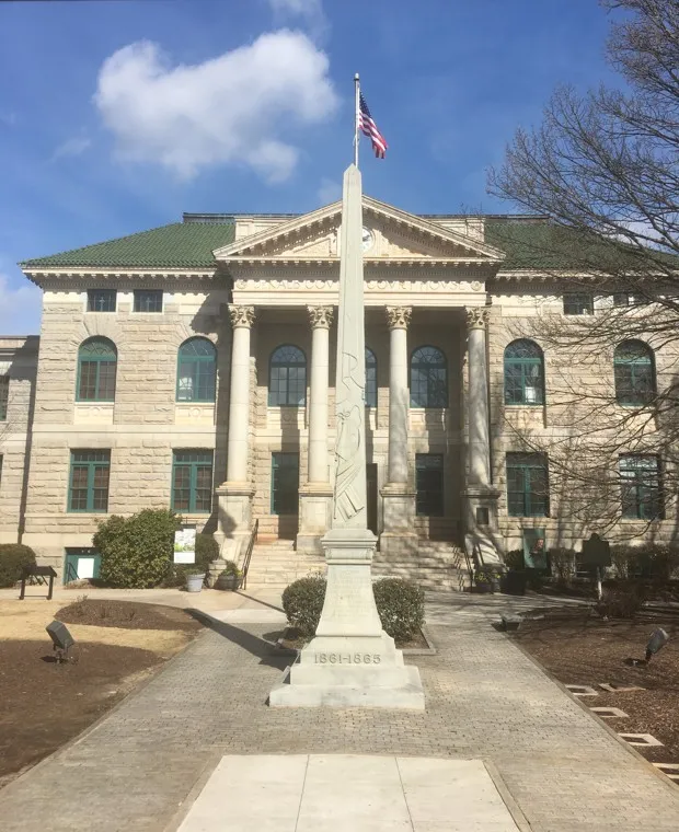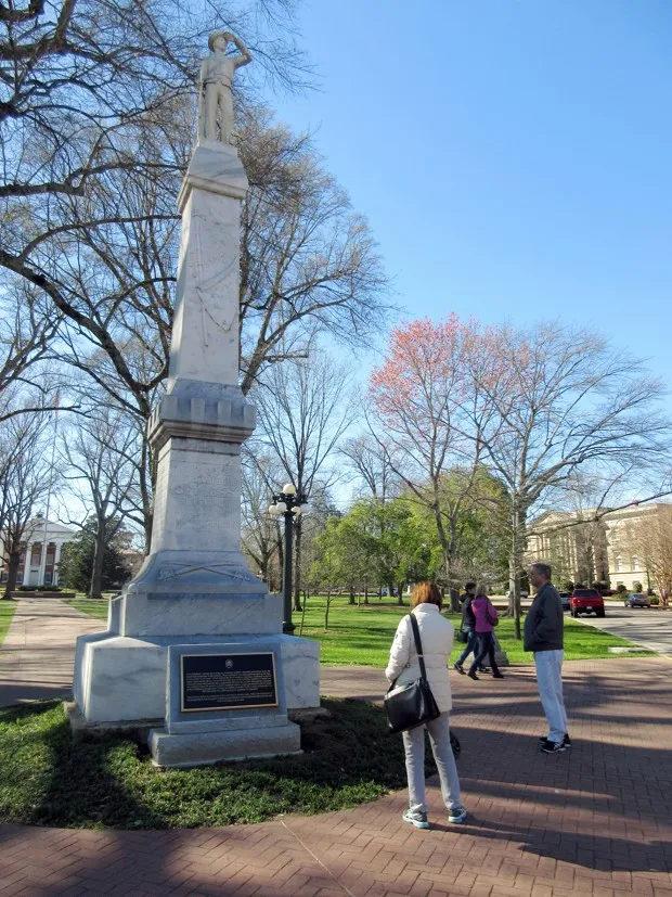 在我抵达位于亚特兰大市中心东部的德凯特尔时,阳光明媚,照耀着那座高达30英尺的方尖碑,它矗立在旧市法院外的天空中。1908年纪念碑的一侧写着:“由德凯尔县的男女老少为南方联盟的士兵和水手所立,以纪念他们在和平与战争中的美德,我们见证这一切,以便公正得以实现,真相不致消亡。”