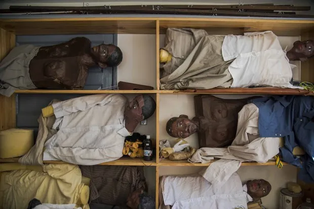 卡西米尔的纸浆雕塑,表现囚犯在床上的样子。让·马克·赫尔维·阿贝拉尔在卡西米尔的装置艺术中,目前在位于太子港市中心监狱附近的海地国家图书馆展出,真人大小的 纸浆 雕塑紧握着细铁栏,躺在微小的木床上。墙上挂着真实被拘留者的铅笔肖像和照片;手写的信件被别在木偶旁边。它们包含了在系统中迷失、被外界遗忘的男女的绝望呼喊。