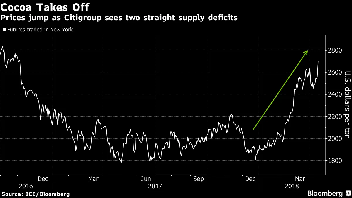 热巧克力铝和大豆等商品在最近几周引起了大部分关注,因为它们在美国和中国之间的贸易争端中占据了核心地位。但在商品市场上还有很多事情发生,这些事情与贸易战几乎没有关系。以可可为例。价格已经飙升,达到了自2016年以来的最高点。花旗集团预测这是十年来最紧张的供应局面,一位分析师表示,这可能只是上涨的开始,现在是成为“狂热的长期看涨者”的时候,彭博新闻的马尔文·G·佩雷斯说。由于西非的干旱影响了作物,2018年价格飙升了43%,该地区占全球供应的三分之二以上。今年的涨幅与过去两年形成鲜明对比,后者在全球过剩的情况下,期货价格暴跌超过40%。较低的价格对种植者造成了影响,他们削减了农场维护的支出。这现在在作物质量上显现出来,产量开始下降,佩雷斯报告说。根据国际可可组织的数据,连续的供应短缺将使供应局面达到自2008年以来的最紧张。同时,巧克力的需求依然强劲。