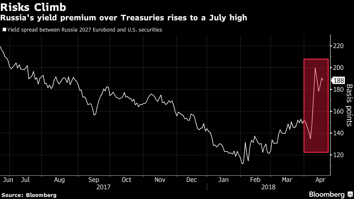 回到(几乎)正常自从数十位俄罗斯巨头和公司遭到最严厉的美国制裁以来,已经不到两周,这导致卢布以及俄罗斯的股票和债券暴跌。但在俄罗斯市场回归正常的最明显迹象中,政府将 恢复每周的债券销售,周三将提供200亿卢布(3.25亿美元)的债务。由于有报道称特朗普政府尚未决定实施额外制裁,俄罗斯可能因此受到鼓舞,继续进行此次销售。尽管如此,俄罗斯财政部选择了到期于2021年12月的短期债券和到期于2022年11月的浮动票息债券,彭博新闻的克谢尼亚·加卢奇科表示。“美国政府没有进一步增加新一轮制裁的事实表明,我们可能在‘制裁行动’中达到了短期暂停,直到叙利亚发生进一步实质性进展,”花旗集团全球市场的策略师路易斯·科斯塔在一份研究报告中写道。俄罗斯并没有放弃在今年发行另一只欧元债券的计划,财政部债务部门负责人康斯坦丁·维什科夫斯基告诉彭博新闻。“我们会寻找机会窗口,”维什科夫斯基说。“目前的市场情况不太有利于融资,但我们从未计划在如此剧烈波动后的三天内进行发行。”