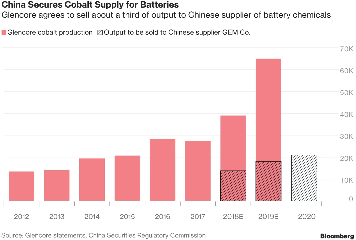 嘉能可在3月份表示,已同意在未来三年内将其约三分之一的产量出售给中国电池化学品供应商GEM公司。