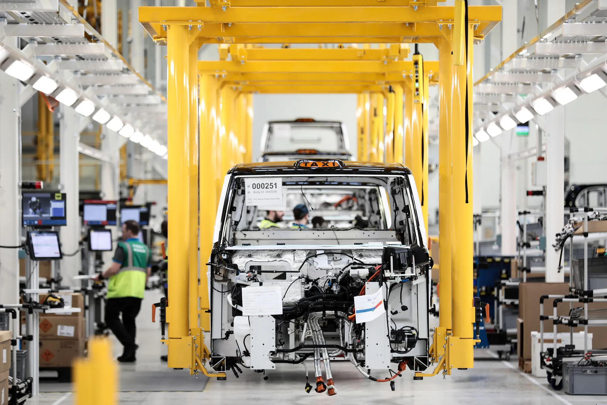 在英国考文垂的伦敦电动车公司工厂内部。该公司由中国的吉利集团拥有,生产在伦敦使用的电动黑色出租车。摄影师:西蒙·道森/彭博社退休的通用汽车副董事长鲍勃·卢茨表示,中国汽车可能会更直接地与日本和韩国车型竞争。美国消费者大多会比较亚洲品牌。
