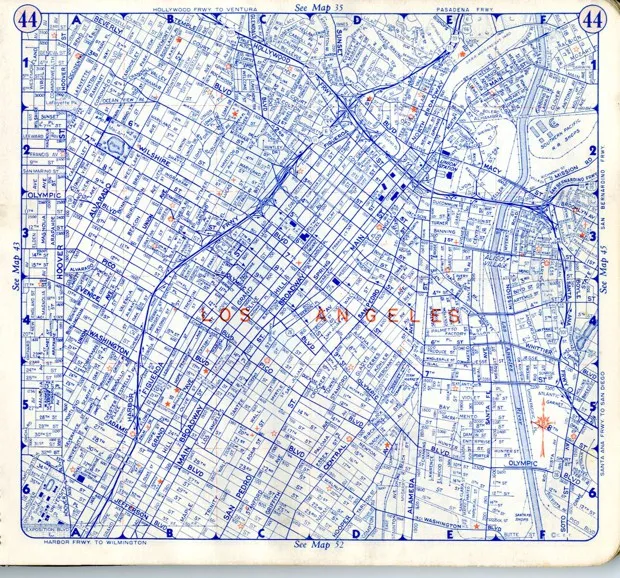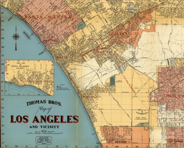 从前,在洛杉矶县的许多手套箱里,你会发现一本托马斯指南:600多页的南加州大都市街道地图。从20世纪40年代末到2000年代,每年发行一次,这些典型的街道地图使得洛杉矶的扩张对新来者和本地居民都变得可导航。当地人会记住托马斯指南的页码和他们家的坐标,并以此给出方向。尽管我父亲很少需要打开它,但他在副驾驶座后面放着一本边缘卷曲的副本,就像是抵御迷路的护身符。