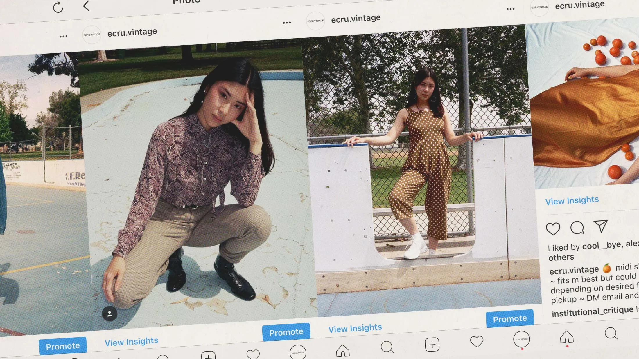 在Instagram商店的连续体中,Soiffer-Kosins的努力更接近于爱好。她在去年春天开始了她的账号,意识到自己对二手购物的热爱可以转化为一些额外的收入。在高中时,她通过在线寄售商店Poshmark出售旧衣服,为她未来的事业埋下了种子。如今,Ecru Vintage展示了同学们为她的库存走秀,每月多达30个造型,每天发布一个。如果商品在Instagram上没有快速售出,她会将它们转移到她的在线商店,该商店位于点对点移动市场Depop上。她说,总的来说,她每周净赚100美元或更多,以补充她的日常工作。