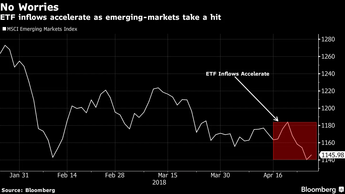 彭博社商业周刊机器人出租车的裁决已出——华尔街正在乘坐火车杰米·戴蒙担任财政部长:永不消逝的想法贾伦·布伦森是NBA现在需要的球员深入了解设定体育博彩赔率的公司美国国债收益率上升和美元走强对新兴市场造成了严重打击,MSCI新兴市场股票指数本周跌至今年最低水平。根据比安科研究,平均而言,新兴市场债务交易所交易基金损失了4.5%,其中仅在过去三周就损失了约2%。但根据一个关键指标,投资者对新兴市场资产的信心正在上升。尽管经历了所有动荡,今年新兴市场股票基金仍享有持续的净流入,过去20天内流入超过24亿美元,比安科表示。“随着欧洲引领全球增长放缓,新兴市场成为全球增长格局中最闪亮的对象,”该公司的策略师在一份研究报告中写道。本月早些时候,国际货币基金组织表示预计新兴市场经济今年将增长4.9%,2019年将增长5.1%,高于2017年的4.8%。比安科的策略师在报告中补充道:“美国10年期国债收益率上升超过3%对新兴市场的重要性往往被夸大。” “国债收益率的同步上升和美元的急剧强势确实影响了新兴市场ETF的表现,但投资者并没有急于离开。”