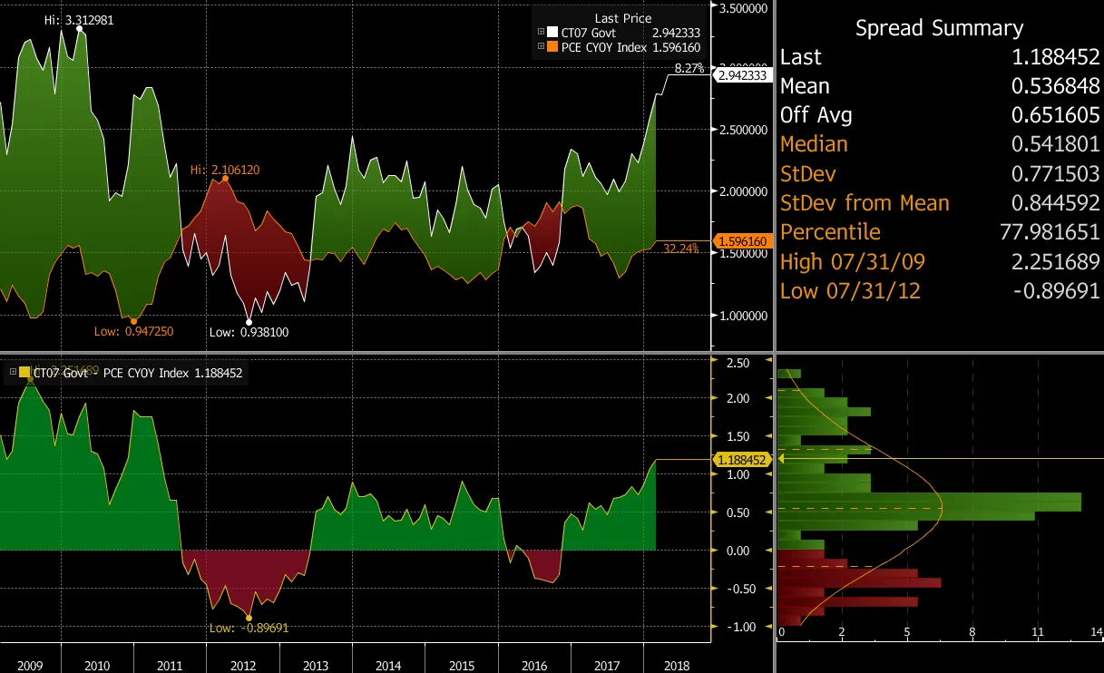 太便宜了,无法忽视。这是周四债券市场的口号,交易员们争先恐后地想要购买美国政府出售的290亿美元七年期国债。是的,确实有很多人担心通货膨胀正在上升,联邦储备可能需要加快加息步伐。但这次发行有额外的优势。所谓的实际收益率,即投资者在考虑通货膨胀后的实际收益,已上升至自2011年以来的最高水平,七年期国债的收益率为1.35%。在此期间的中位数为0.56%。交易员的出价是所提供金额的2.56倍,高于上个月七年期国债拍卖的2.35倍。策略师们将结果描述为“强劲”,这令人惊讶,因为许多专家公开表示,自1980年代初以来的长期牛市已经结束。投资者仍然在债券中发现价值的证据对所有金融市场都是有利的,从股票到美元。全球各大央行最近采取了更加鸽派的立场,承认全球经济在2018年初略有放缓。