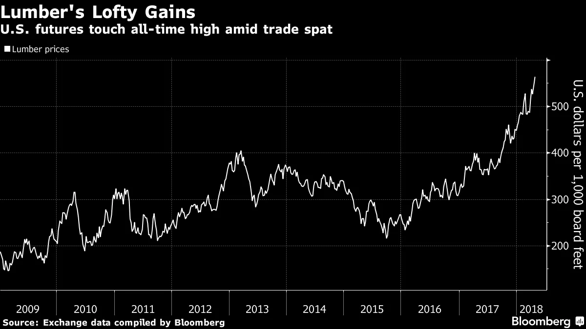 木材危机听到房屋建筑商抱怨木材成本上升并不奇怪,木材价格在芝加哥商品交易所已飙升至每千板尺超过550美元的历史高位。两年前价格只有一半。现在,建筑商们正准备迎接更高的价格,这与供应、需求甚至北美自由贸易协定无关。似乎加拿大的 铁路运力短缺 使得从锯木厂到美国客户的木材运输变得困难。根据彭博新闻的詹·斯凯里特的报道,严酷的冬季条件和来自多个加拿大行业(包括谷物和原油)的需求激增导致了铁路货车的短缺。木材期货今年上涨了约25%,是彭博跟踪的表现最佳的商品之一。西弗雷泽木业公司周四表示,运输中断导致库存大幅增加,目前尚不确定积压的货物何时能清理完毕。国际纸业公司在第一季度有一些库存未能从其位于阿尔伯塔省大草原的纸浆厂发出。