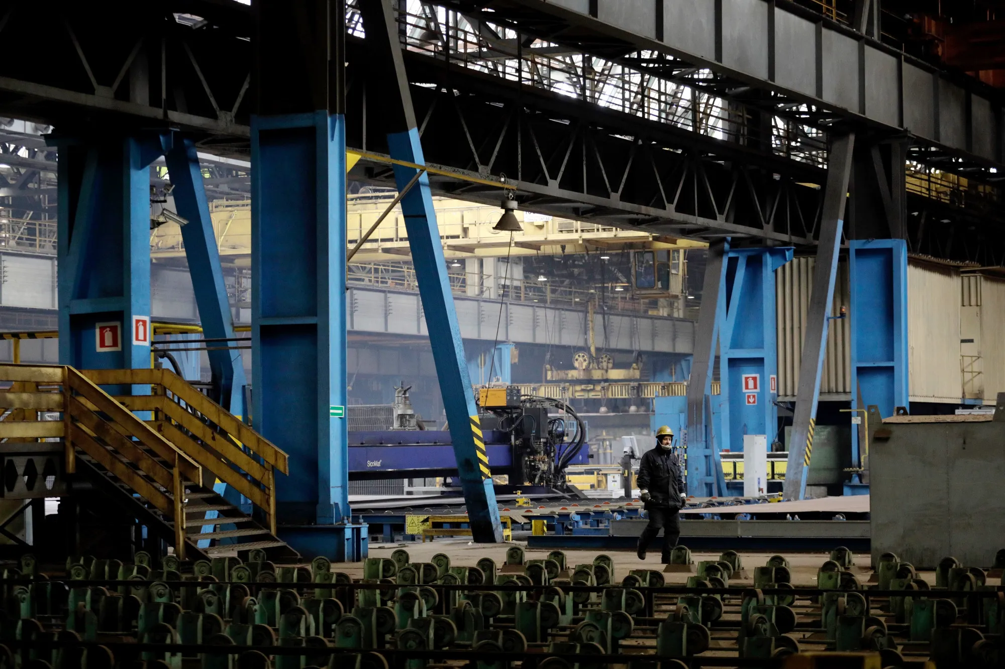 摄影师:皮奥特·马莱基/Bloomberg当来自波罗的海的微风吹入波兰格但斯克港时,工人们正准备将通常用于船舶部分的硬黑钢板转变为500吨的海上风电涡轮机管道。