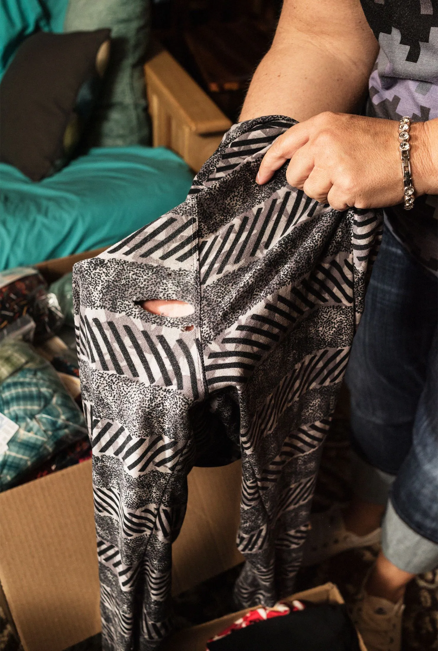 回到圣地亚哥,Blevins对此一无所知。她飞遍全国参加公司活动。她加入了一个声称是她朋友的顶级销售顾问小圈子,但大多数只是喂养她的不安全感,就像LuLaRoe是一个高中受欢迎程度的比赛。她辞去了工作。然后在2016年7月的某一天,她走进她的LuLaRoom——顾问们给他们家里存放所有库存的房间起的昵称——打开一个装满打底裤的塑料储物箱的盖子,感到恶心。“气味袭来,像,哇,”她说。“闻起来就像有人在泳衣里拉屎,把它放在一个Ziploc袋里,放了一周。”臭味的来源竟然是四条从未穿过的打底裤。然后一些打底裤湿透了寄到她那里,还有一条淡薄荷色的打底裤,上面有黑点,看起来像霉菌。她给LuLaRoe的客户支持团队发了一封电子邮件。她收到了回复,称客户支持邮件不再被监控,并要求使用一个特殊的软件系统提交正式工单。于是她照做了。她的工单被关闭。她再次打开。再次关闭。打开。关闭。经过一个多月的这种情况,最终公司给她的账户记了42美元。“那是我第一次意识到公司出问题了,”Blevins说。