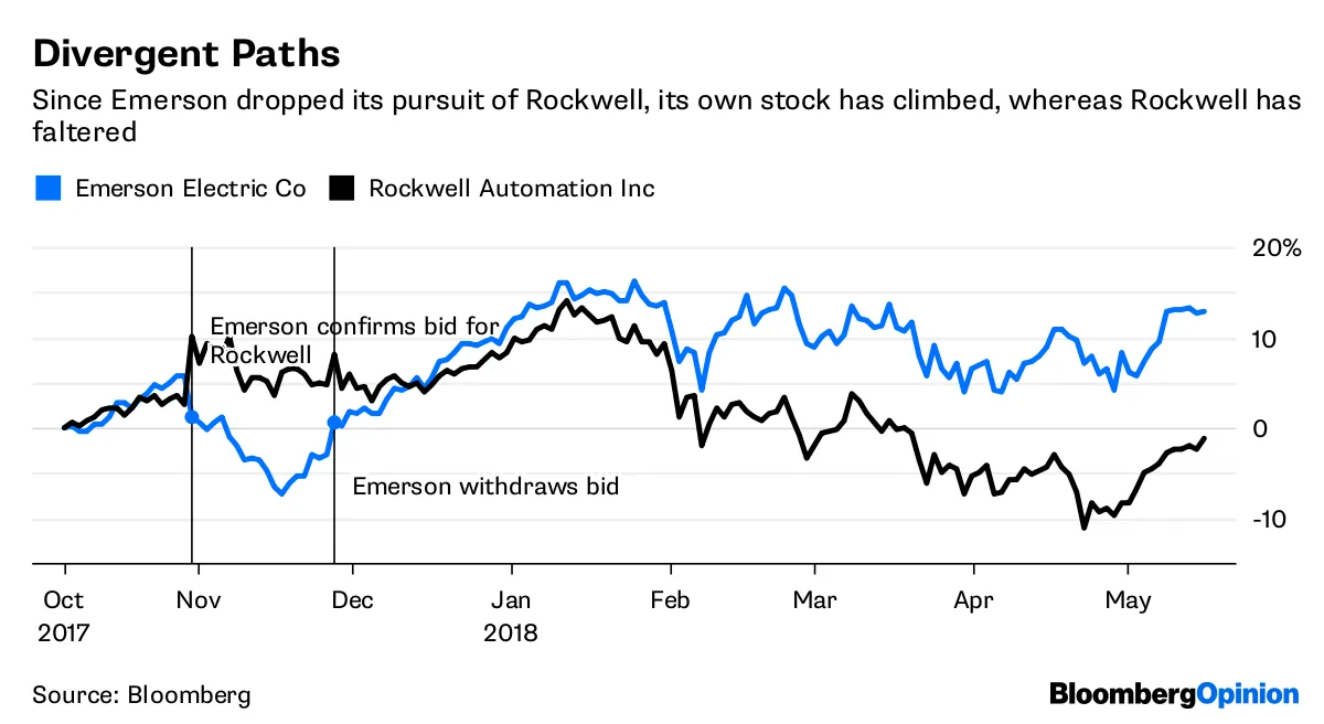 自从未能完成280亿美元收购罗克韦尔自动化公司的交易以来,艾默生电气公司一直在哭着去银行,布鲁克·萨瑟兰写道。