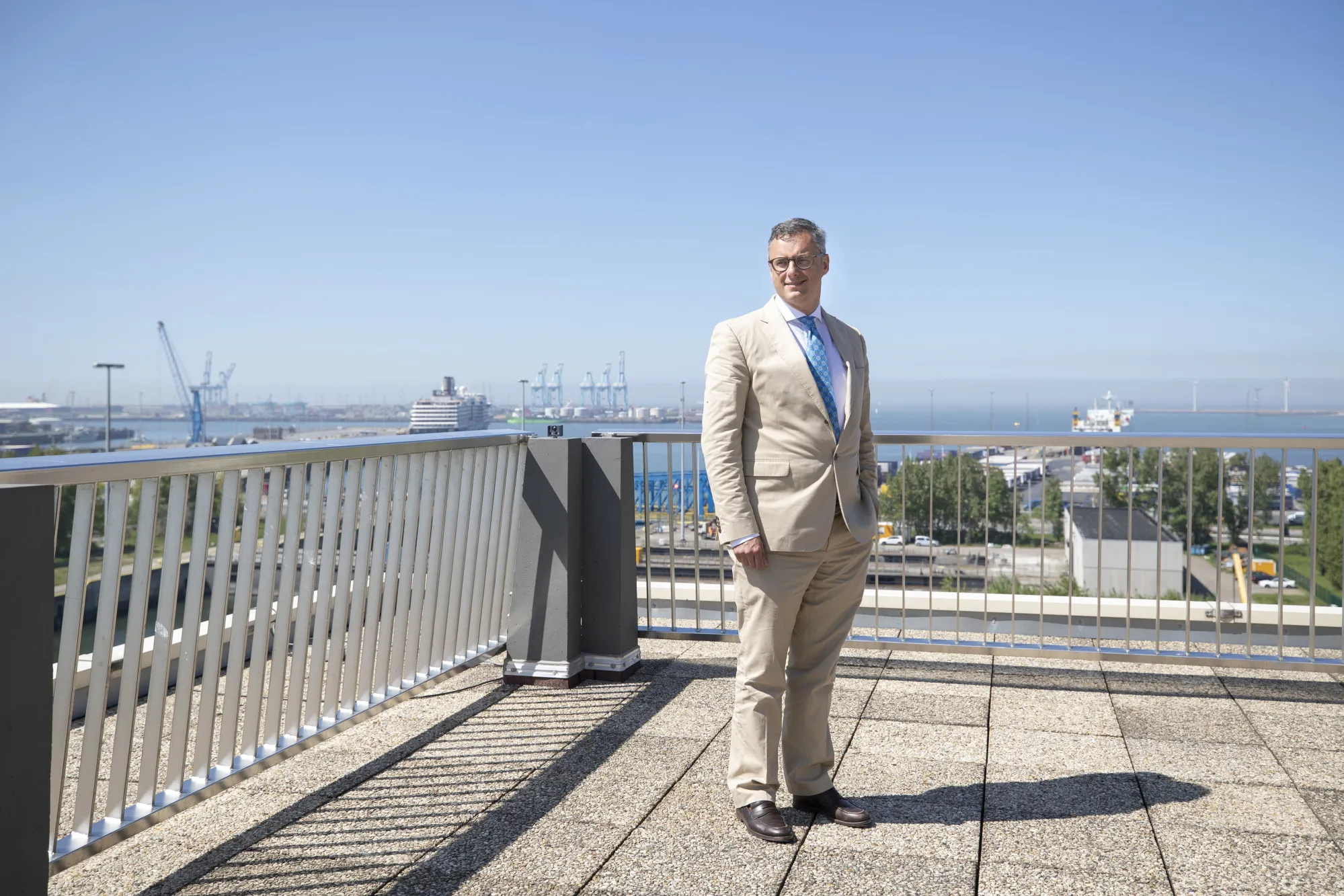乔阿希姆·科恩斯。摄影师:贾斯珀·朱宁/彭博社英国几乎占泽布鲁日港出入境货物运输的一半,以及港口约三分之一的汽车贸易,该港口每年运输近300万辆新车。港口的核心业务是集装箱运输和运送拖车及汽车的渡轮,这些车辆在船只上和下船时被驾驶。
